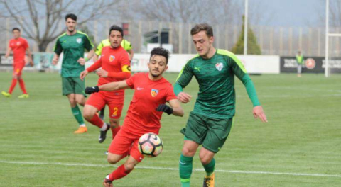 TFF 21 Yaş Altı Ligi'nde zirve mücadelesi veren Bursaspor, 24. hafta karşılaşmasında Kayserispor ile golsüz berabere kaldı. Kubilay Kanatsızkuş, Emre Taşdemir, Alper Ademoğlu, Yusuf Abdullah gibi A Takım kadrosunda bulunan oyuncuların ağırlık olarak forma giydiği maçta Yeşil Beyazlılar, topu bir türlü filelerle buluşturmayı başaramadı. Vakıfköy Orhan Özselek Tesisleri'nde oynanan müsabakanın orta saha mücadelesi şeklinde geçen ilk yarısında her iki takım da ciddi bir gol pozisyonu üretemedi ve soyunma odasına golsüz eşitlikle gidildi.
