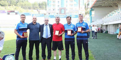 Gençlik Geliştirme Proje Sorumlusu Ümit Şengül'ün konuşmacılar arasında yer aldığı seminerin sonunda, geçtiğimiz sezonu çalıştırdığı yaş gruplarında Türkiye Şampiyonu olarak tamamlayan Bursaspor Futbol Akademisi antrenörleri Muzaffer Kabadayı, Nurgut Ak ve Serkan Türkay'a TÜFAD Bursa Şubesi tarafından plaket verildi.