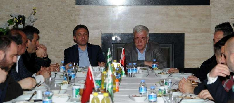 Teknik Direktörümüz Mutlu Topçu ve yardımcı antrenörlerimizin de katıldığı yemekte, yönetim kurulu üyelerimiz idari ve sportif konularda fikir alışverişinde bulunurken, birlik ve beraberlik içinde hareket edilmesi, kalan 9 haftada şehir ve takım motivasyonunun üst düzeyde yaşanması için mücadele edilmesinin gerektiği vurgulandı.