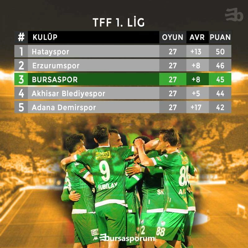 Hatayspor, BB Erzurumspor ve Adaba Demirspor'un puan kaybettiği haftada Bursasporumuz 3 puan alarak üst lig için hedefini korudu.