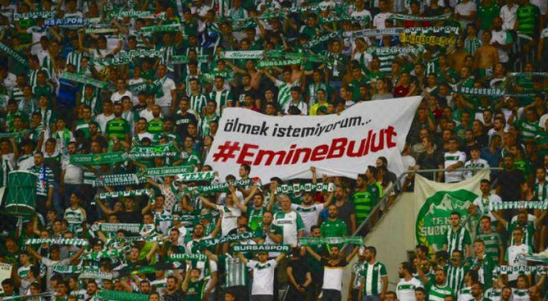 Eski eşi tarafından hunharca katledilen Emine Bulut'un yası tutulurken Bursaspor ve Akhisarsporlu futbolcular maça siyah pankartla çıktı.
