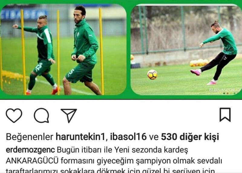 Bugün itibarı ile Yeni sezonda kardeş ANKARAGÜCÜ formasını giyeceğim şampiyon olmak sevdalı taraftarlarımızı sokaklara dökmek için güzel bi serüven için hazırız ve şunu söylemek isterimki,yeri geldi sevindik sevindirdik yeri geldi ağladık ağlattık yeri geldi sahada beraber olduk 2 sezon boyunca gururla formasını terlettiğim büyük BURSASPOR camiasına çalışanlarına takım arkadaşlarıma hocalarıma ve herşeyden önemlisi BÜYÜK BURSASPOR TARAFTARINA hoşgörülerinden dolayı teşekkürü borç bilirim hakkınızı helal edin en ufak bi hakkım varsada o cefakar insanlara hakkım helal olsun sağlıcakla kalın.