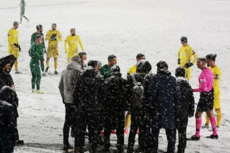 Saha temizleme çalışmaları devam ederken, hakem Direnç Tonusluoğlu, 12 dakika sonra sahaya dönüp zemini kontrol etti.Yoğun kar yağışının devam ettiğini gören İzmir Bölgesi A Klasmanı hakemi, karşılaşmanın yarına ertelendiğini bildirdi.Karşılaşma pazartesi akşamı saat 19.00'dan itibaren 18.dakikadan itibaren kaldığı yerden devam edilecek.Eyüpspor, 2. dakikada Pa Dibba'nın attığı golle 1-0 öndeydi.