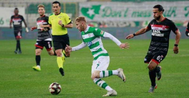 Bursaspor, ilk yarıda hücumda çoğalmak adına Aykut geriye düşerek stoperlerin oyun kurmasına destek olurken, Emirhan Aykut’un önünde pivot noktası olarak görev alıyordu. Top hangi kanattan hücum ediyorsa ki bu genellikle sol kanat oldu, o kanattaki bek iç kulvara girerek eşleşme sorunu oluşturmaya çalıştı ve çoğu zaman başarılı olundu. Buradaki sıkıntı ise merkez kulvardan içeri kaçan Recep, Kubilay ya da Özer’in etkili olabilecekleri yerlerde topla buluşturmakta zorlanılmasıydı.