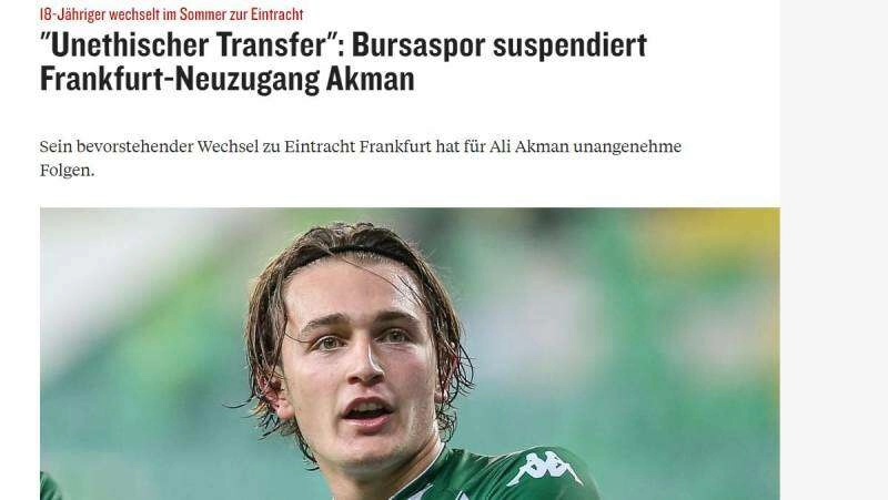 Almanya’da geniş yankı uyandırdı Eintracht Frankfurt’un Bursasporlu Ali Akman'ı sezon sonundan itibaren geçerli olmak üzere transfer etmesi ve bunun ardından genç oyuncunun yeşil-beyazlılarda kadro dışı bırakılması Almanya’da geniş yankı uyandırdı.