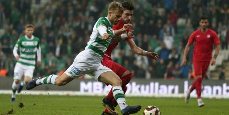 Büyükşehir Belediye Stadı'nda oynanan karşılaşmanın ilk bölümündeki futboldan memnun kalmayan yeşil beyaz sevdalıları, takımın kendi sahasında top çevirmesine tepki gösterirken, yapılan paslarda oyuncuları ıslıkladılar.