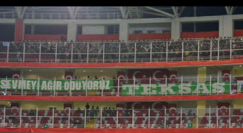 Neredeyse ev sahibi ekibin taraftarından daha fazla bir şekilde tribünde yer alan Yeşil Beyaz sevdalıları, takımlarının içinde bulunduğu durumu açtıkları pankartla özetledi. Yeşil Beyazlı taraftarlar tribüne, 'seni sevmeyi ağır ödüyoruz' pankartıyla maça damgalarını vurdu.
