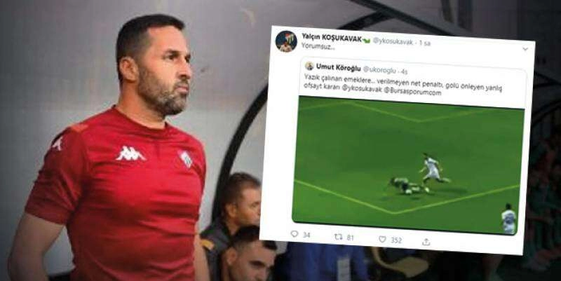 Bursaspor'da Karagümrük karşılaşmasının maçının yankıları devam ediyor. Yeşil beyazlı ekibin teknik patronu Yalçın Koşukavak dün sosyal medya hesabında çarpıcı paylaşımlarda bulundu. Koşukavak hem Emirhan'ın yerde kaldığı hem de Onur'un ofsayt diye kesilen pozisyonlara 'Yorumsuz' diyerek paylaştı.