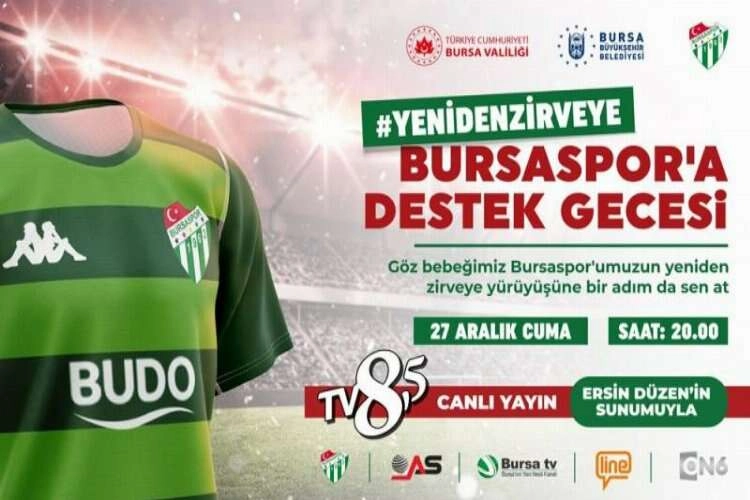 TV 8,5 kanalında 27 Aralık 2019 tarihinde saat 20:00’de canlı yayınlanacak ve Ersin Düzen'in sunacağı #YenidenZirveye Bursaspor'a destek gecesi programı, kampanyaya desteği arttırmak ve Bursaspor aidiyetini bir kez daha vurgulamayı amaçlıyor.
