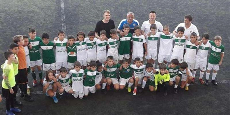 Ertuğrul Ersoy sabah saatlerinde Merinos'ta bulunan Futbol okulunu ziyaret ederek minik öğrencilerle hatıra fotoğrafı çektirdi.