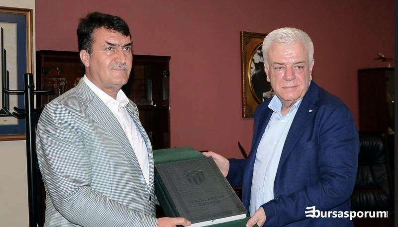 Ziyaretin sonunda Başkanımız Ali Ay, Osmangazi Belediye Başkanı Mustafa Dündar’a kulübümüzün Almanak hediye etti.