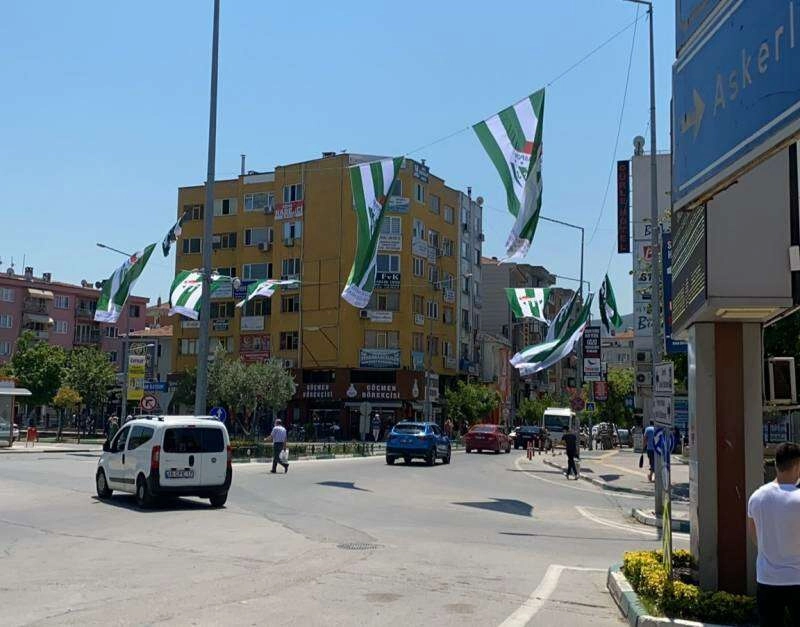 Gemlikli Bursasporlular Derneği‘nin hazırladığı bayraklar Gemlik caddeleri ve sokaklarına asıldı. Asılan bazı bayraklarda ise Bursalı Şehit Taner Çobanoğlu ile Bursaspor taraftarı olan ve deplasman dönüşü kaza geçirerek yaşamını yitiren Yüksel Utgin‘in fotoğrafları ile “Gemlikliler ölmez kalplerde yaşar” yazısı yer aldı.