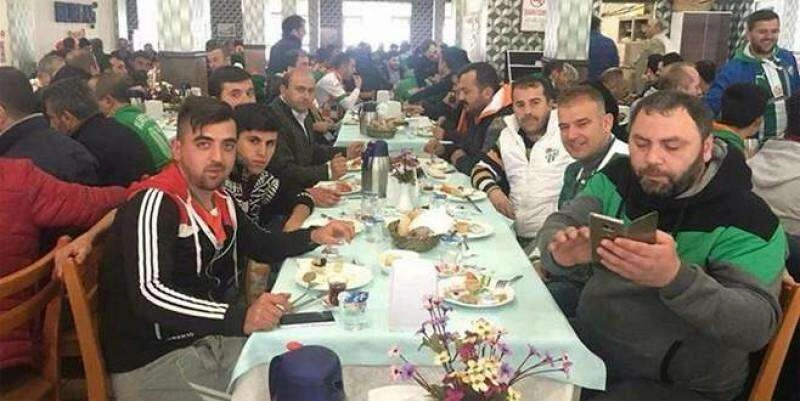 Bursa Büyükşehir Belediyesi Doburca Tesisleri'nde maçtan önce yapılan kahvaltıya her iki takım taraftarları da katıldı. Bu organizasyonda dostluk görüntüleri ön plana çıktı.
