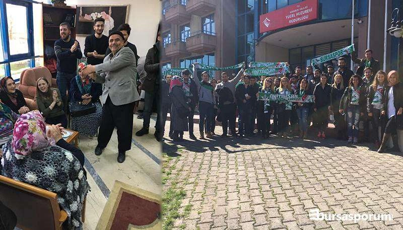 Üniversiteli Bursasporlular Derneği'nin Karabük, Uludağ, Bursa Teknik ve Antalya temsilcilikleri şehirlerinde bulunan Huzur Evlerini 18-24 Mart Yaşlılar Haftası nedeniyle ziyaret etti. Huzur Evi'nde bulunan yaşlılarımızın bu ziyaretten çok mutlu olduğu kimisinin ağlayıp kimisinin kahkahalarla hikayeler anlattığı gözlendi.