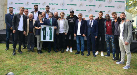 Etkinlik kapsamında Aroma Genel Müdürü Sefer Kılınç ve Aroma AŞ yöneticileri, Bursaspor İkinci Başkanı Cem Öztürk'e, Teknik Direktör Samet Aybaba ve Basketbol Takımı Başantrenörü Arda Vekiloğlu'na organizas- yona katıldıkları için plaket takdim etti. İkinci Başkan Cem Öztürk de tozluk sponsoru olan Aroma'ya Bursaspor'un maçlarında kullandığı tozluklardan oluşan çerçeveyi hediye etti. Aroma AŞ Genel Müdürü Sefer Kılınç, "Bursa topraklarından doğan Aroma, yarım asırdır Bursaspor'a destek veriyor. Bizi bu mutlu günümüzde yalnız bırakmayan şehirimizin kulübüne çok teşekkür ediyorum. İnşallah 3 yıl içinde göğüs sponsoru olacağız" dedi.