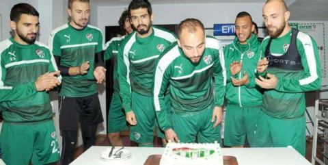 Bursaspor'un tecrübeli oyuncularından Şamil Çınaz'ın 31. yaş günü dünkü antrenman öncesi soyunma odası çıkışında kutlandı.