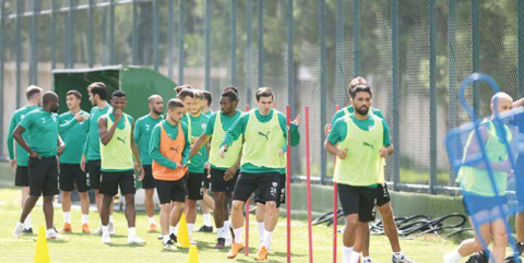 İlk 20 dakikası basın mensuplarına açık olan antrenman ısınma hareketleriyle başladı ve topla oynama çalışmasıyla devam etti. Sakatlıkları bulunan Henri Saivet antrenmana katılmazken, Aurelien Chedjou ise salonda çalıştı. Yeşil beyazlılar, idmanın son bulümünde taktik ağırlıklı bir idman gerçekleştirdiği belirtildi.