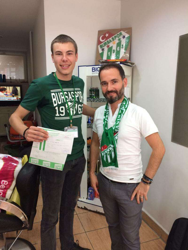 Mahalleleri ve esnafları tek tek dolaşan Ünitimsah üyeleri Bursaspor Dergisi'nin abonelik işlemlerini yapıyor.