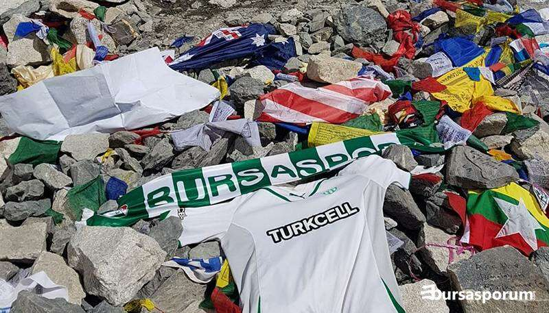 "Bursaspor'un ve Bursasporluların yeri zirvedir" diyen Ömer Yavuz, Bursaspor atkı ve formalarıyla bu güzel anları Everest'te ölümsüzleştirdi.