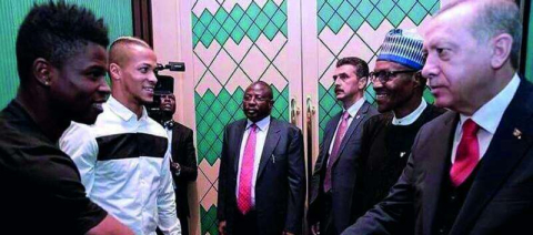 Cumhurbaşkanımız Recep Tayyip Erdoğan, Buhari'yi Cumhurbaşkanlığı Külliyesi'nin ana giriş kapısında karşılarken, bu düzenlenen törende Nijerya'lı futbolcularımız Mikel Agu ve William Ekong'da Cumhurbaşkanlığı özel davetlisi olarak orada yer aldı.