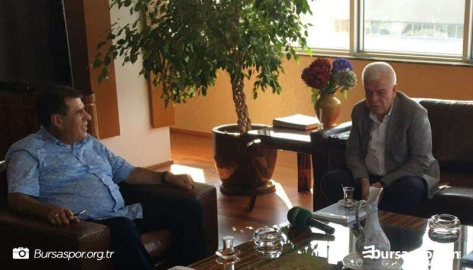 Ziyaretin sonunda Ali Ay, Faik Çelik'e katkılarından dolayı teşekkür ederek "Bursaspor Almanağı" hediye etti.